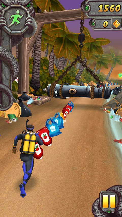 Управління діями залишилося незмінним: свайп вправо/ліворуч - виконання повороту на 90°, свайп вгору - здійснення стрибка, свайп вниз - підкату. Сьогодні ця популярна гра вже доступна для завантаження на пристрої під керуванням Android. Понад мільйон гравців встановили цю гру. Скачати другу версію Temple Run 2 можна у нас на сайті абсолютно безкоштовно – отримай хвилюючий біг, ковзання, стрибки, повороти. Грай разом з нами, грай краще за нас!